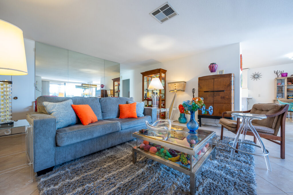 Designed by William F. Cody, AIA, this spacious Palm Springs Country Club condo showcases classic mid-century lines, clean architectural geometry, and an effortless indoor-outdoor lifestyle. Trapezoidal rooflines, floor-to-ceiling glass, and expansive sliders—hallmarks of Cody’s vision—are all on display in this comfortable patio home. One of the coveted 3-bedroom, 2-bath residences in Phase Two of one of the last condo community projects Cody designed (originally known as Whitewater Country Club), this is among the largest floor plans in the community, offering generous living and dining areas, abundant natural light, and seamless patio access for desert entertaining. The kitchen has been thoughtfully updated with new countertops, sink, lighting, and appliances—fresh, bright, and ready for full-time living or an easy weekend escape.